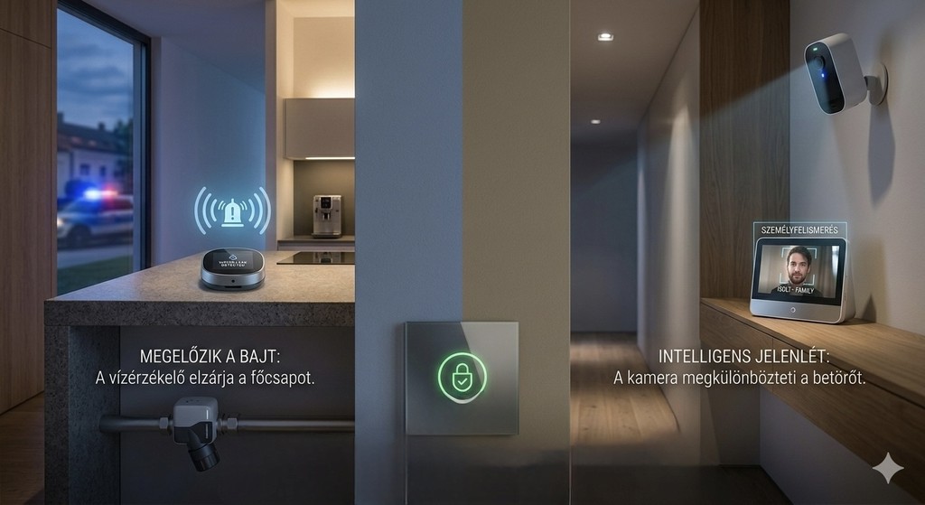 Az okos biztonság nem egy szirénázó doboz a falon, hanem egy összefüggő védelmi háló. Az érzékelők nemcsak a betörőt látják, hanem a bajt is megelőzik: ha a konyhában csőtörés van, a vízérzékelő azonnal elzárja a főcsapot, és értesítést küld a telefonjára, mielőtt elázna a lakás.